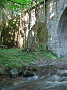 Hetzdorfer Viadukt. Diese gewaltige mehrbogige Steinbrücke über dem Flöhatal trug die Hauptbahn Chemnitz - Dresden und ist heute ein wunderbarer Aussichts-Spazierweg. Besagte Trasse wurde wegen Bauwerksschäden durch eine 2km lange Neubaustrecke ersetzt: bemerkenswert durch Beschluss und Baubeginn zu DDR-Zeiten (1986/87), Fertigstellung weit nach der Wende und Einheit (1992) ! Auf der alten Trasse fand man noch alte Bahnwärterhäuschen, eine Wegüberführung, unter dem Bauwerk den alten Bahnhof Hetzdorf (einstige Fernnebenbahn Chemnitz-Prag), der auch Ausgangspunkt der 750mm-Bahn nach Großwaltersdorf war.